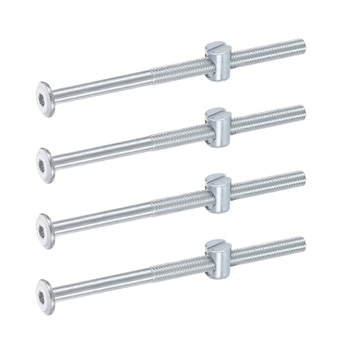 uxcellのM6 x 100mmヘックスソケットヘッドスクリューボルト4個セット。二段ベッドや家具の組み立てに最適なバケットナット付き。シルバー仕上げ。