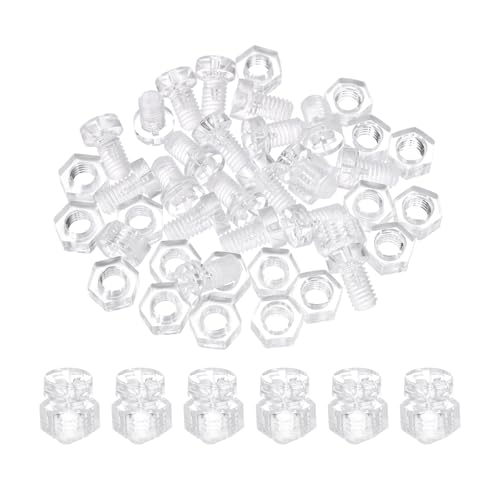 uxcellのM6×10mmクリアアクリルネジと六角ナットキット20セット。PCプラスチック製で、フィリップスラウンドヘッド、メートリック粗いスレッドのボルト。透明なデザインで様々な機械用途に最適。