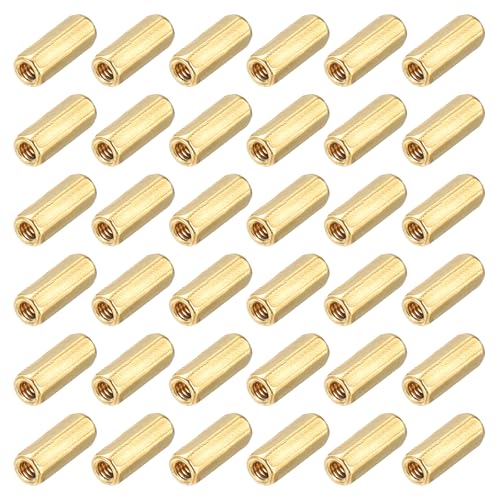 uxcell 真鍮六角結合ナット M2x8mm、メススレッド六角スペーサーで、PCBマザーボード回路用。金トーン、38個入り。高品質で耐久性あり。