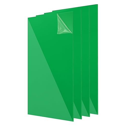 uxcellのアクリル板4枚セット(12×8インチ、300x200mm、1/8インチ、3mm厚)は、透明緑のプラスチック板で、写真フレームやサインホルダー、DIYディスプレイ、クラフト用に最適です。