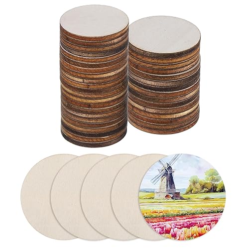 uxcellの木片は直径3cm、厚さ2.5mmの超薄型木製スライスです。無塗装で50枚入り、DIYや印字彫刻、手描きの素材として最適です。工芸品や模型の装飾にもバッチリ!