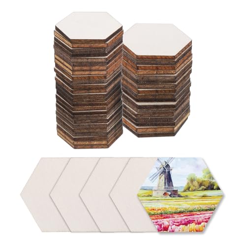 uxcellの六角形木片は30mm x 30mm、厚さ2.5mmの超薄型木製スライス。50枚入りで未塗装、装飾や工芸、印字彫刻、DIYに最適。