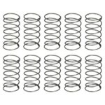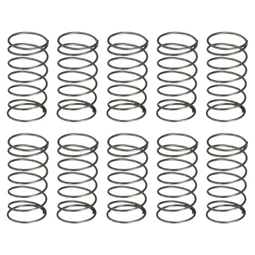 uxcellの圧縮スプリングは、外径5mm、線径0.3mm、自由長10mmの鋼製で、10個入り。機械用やホーム修理に最適なシルバーの製品です。