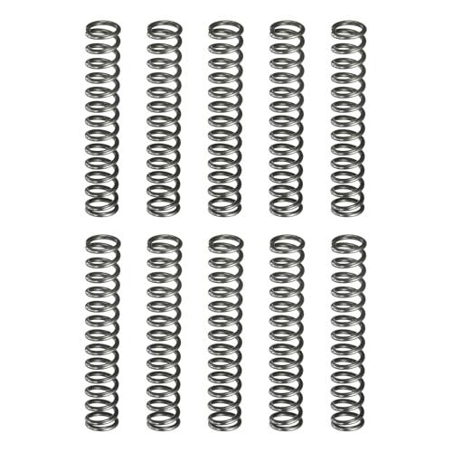 uxcell 圧縮バネ10個セットは、外径7mm、線径1mm、自由長40mmのスプリング鋼製で、シルバーカラー。工場や家庭用の修理向けに適した機械用圧縮スプリングです。