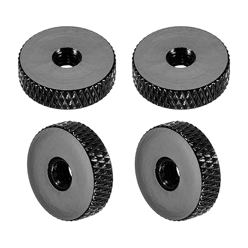 uxcellの4個セットねじりナットは、M4サイズ(14mm x 4mm)でアルミ製のフラット形状。調整可能なデザインで、3DプリンターやDIY機械に最適な黒色のパーツです。