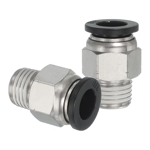 uxcellの2個入りNPTプッシュ・トゥ・コネクト・エア・フィッティング。3/8インチチューブOD、1/4インチNPTスレッド仕様。ガスホースや空気工具に最適な黒のクイックコネクタ。