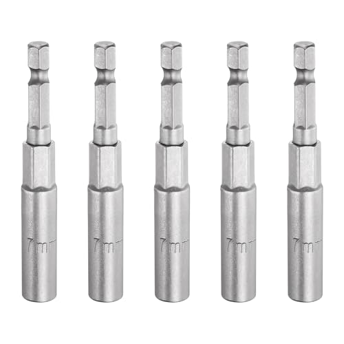 uxcellのナットドライバードリルビットは、7mmソケットと1/4インチ六角シャンクを備え、80mmの長さで磁石付き。CR-V鋼製で、パワードリルドライバーに最適です。