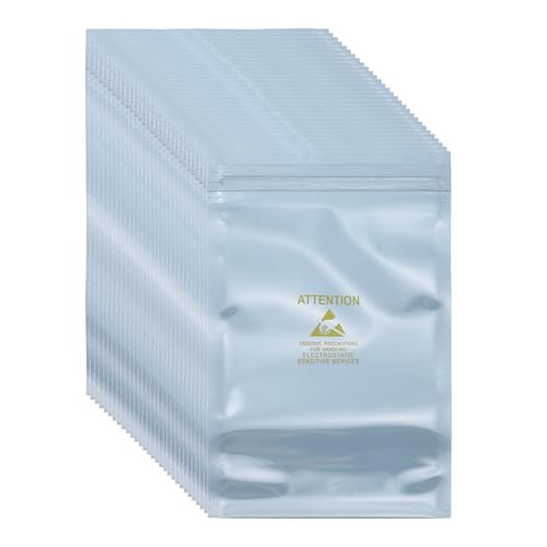 uxcellの防静電袋は100枚入りで、サイズは4.3″×7.1″。再封可能なESDシールドバッグで、HDD、SSD、電子機器、マザーボードなどに最適です。シルバーグレーのラベル付きで、静電気から製品を保護します。