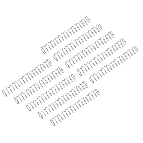 uxcellの10個入り圧縮スプリングは、304ステンレス鋼製で外径7mm、線径0.5mm、長さ50mmです。家庭用や工場修理プロジェクトに最適なシルバートーンの機械用スプリングです。