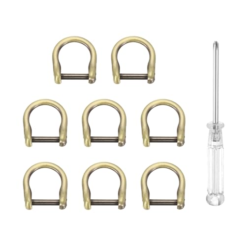 uxcellのD型リング8個セットは、1/2インチのメタル製で、スクリュー式シャックル形状。DIY革工芸やキーホルダーに最適、金色でおしゃれなアクセサリーに。ドライバー付きで便利。