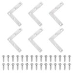 uxcellのL型フラットブラケット6個セットは、80x80mmの金属製直角補強プレートです。木製家具の補修に最適で、ネジが付属し、シルバーの仕上げが特徴です。