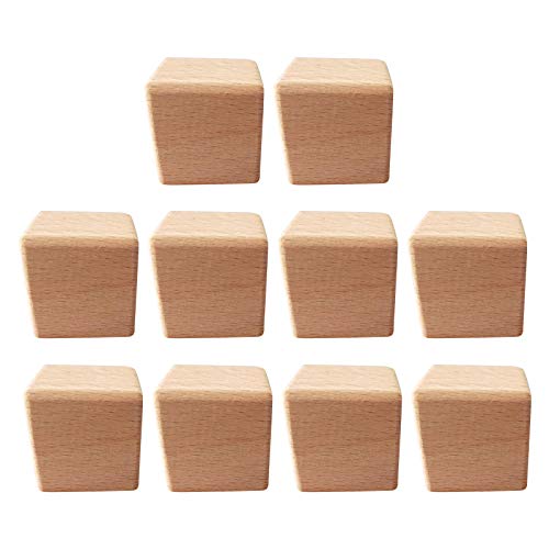 10個の未塗装ブナ木製キューブ、2.5センチメートルサイズ。正方形のベビーブロックとして、DIYやパズル製造、工芸品制作に最適です。