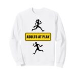 大人用のPlayブランド製品。黄色い道路標識がデザインされたトレーナー。男女兼用で、ジョギングやカジュアルシーンに最適。ワイングラスを持ったデザインでおしゃれ感も演出。