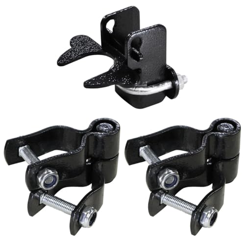 アメリカンフェンスの扉金具セットAは、Φ31.8用で、ヒンジAが2個とラッチAが1個のセットです。ハンマートーンブラックで、DIYや金網、ガレージフェンスに最適です。