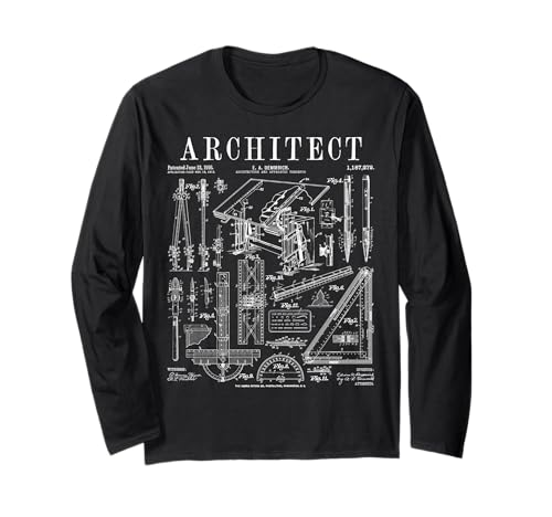 建築家と建築学生に最適なヴィンテージスタイルのプリント長袖Tシャツ。特許デザインが施され、個性的なファッションを演出します。快適な着心地で、日常使いや授業にもぴったりです。