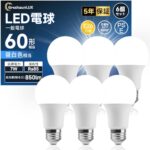 LED電球 E26口金 電球色 60W形相当 広配光 850lm 高演色性 一般電球 PSE認証済み 密閉器具対応 断熱材施工器具対応 非調光 6個パックの製品情報