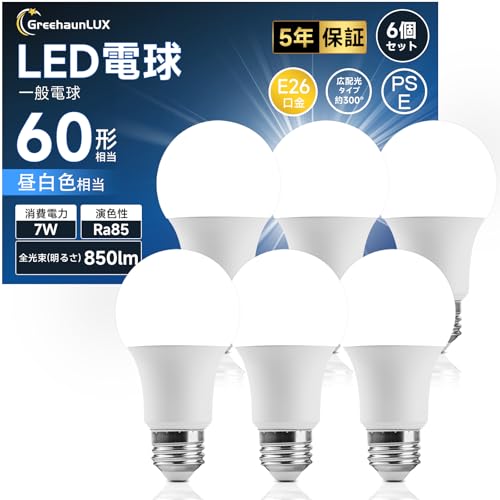 / LED電球 E26口金 電球色 60W形相当 広配光 850lm 高演色性 一般電球 PSE認証済み 密閉器具対応 断熱材施工器具対応 非調光 6個パック