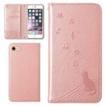 Galaxy 5G Mobile Wi-FiケースSCR01は、音符と猫柄の型押しレザーを使用した手帳型カバーです。マグネットなしでベルトもなく、かわいいパールピンク色でモバイルルーターに最適です。