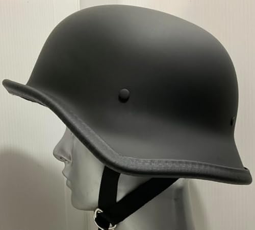 訳ありアウトレットのビッグジャーマンヘルメット。ダブルストラップ付き、つや消し黒のマットブラック仕様。XLサイズ、ツバ5cm。装飾用としても最適な並行輸入品です。