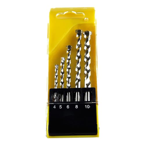 5枚セットのドリルビットは高強度鋼製で、コンクリート、レンガ、セメントへの穴あけに最適です。耐久性が高く、電動工具アクセサリーとして効果的です。