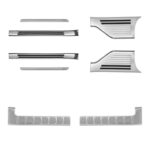 新型ムーヴ LA850S LA860S専用のラゲッジ&サイドステップスカッフプレート保護パーツセット。シルバーヘアライン仕上げでスタイリッシュに、傷防止効果を発揮します。