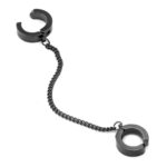 柔らかい金属アレルギー対応のイヤーカフです。二連チェーンデザインで、軟骨や耳たぶに簡単に装着可能。ロングチェーンが垂れ下がり、シンプルでスタイリッシュ。片耳用で、お好きな位置に装着できます。ブラックカラー。