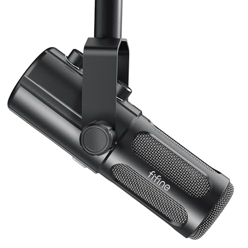 FIFINEのポッドキャスト用マイクは、USB/XLR対応のダイナミックマイク。録音やストリーミングに最適で、周波数応答調整、ミュートボタン、ヘッドホンモニタリング機能を搭載。