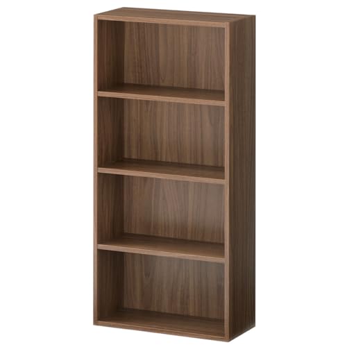 ぼん家具の薄型本棚は、ウォールナットの木製でスタイリッシュな4段マルチラックです。カラーボックスとしても使用でき、様々な収納ニーズに対応。スペースを有効活用し、リビングや書斎に最適です。