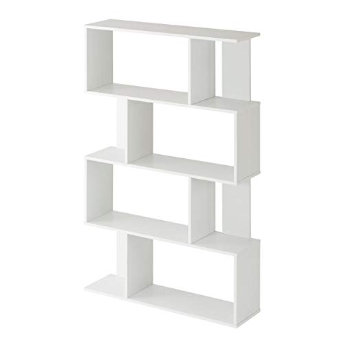 ぼん家具のシェルフは、オープンラックの薄型デザインで、S字型のディスプレイラックとしても活躍します。間仕切りとしても使えるワイドタイプの4段構造、カラーはホワイトです。
