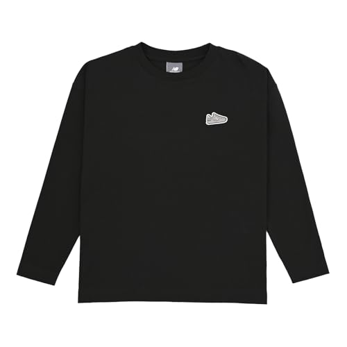 ニューバランスのジュニア/キッズシューパッチ長袖Tシャツ(ABT55558)は、ブラックカラーでスタイリッシュなデザイン。快適な着心地を提供し、日常のアクティブなシーンに最適です。