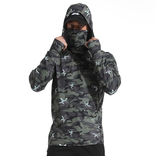 ABYSTTIのメンズ長袖フィッシングパーカーは、速乾・UVカットUPF50+のアイスシルク素材で、アウトドアやスポーツに最適です。通気性が良く、日焼け防止機能も。超軽量で4色展開、XLサイズのグリーン迷彩があります。