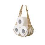 A-Chicotのトイレットペーパーストッカーは、網状デザインでおしゃれな収納が可能です。予備のペーパーを吊り下げて整理でき、ベージュのカラーがインテリアにマッチします。