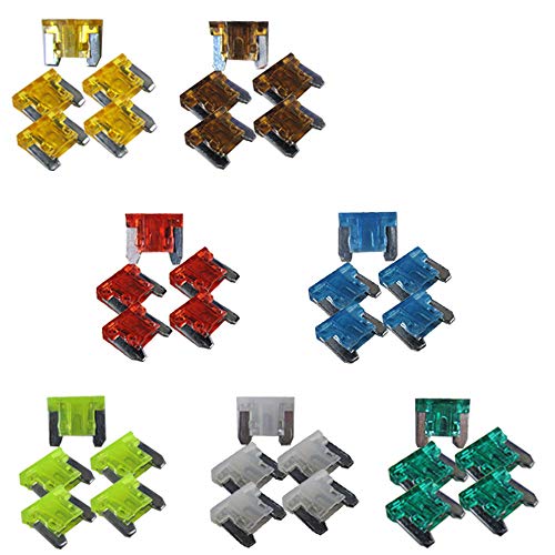 低背ヒューズ7種類×各5個セット。収納ケースとエレクトロタップ付きで、整理や取り扱いが容易。トラブルシューティングやカー電装にも最適なアイテム。
