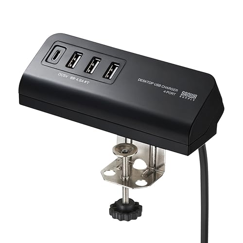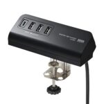 サンワサプライのUSB充電器 ACA-IP51BKは、コンセントに取り付け可能なクランプ式で、Type-Cポート1つとUSB Aポート3つを搭載。デスクでの使用に便利なブラックモデルです。