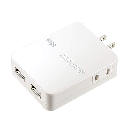 サンワサプライのACコンセント付きUSB充電器(合計3.4A)は、2ポートでiPhoneやAndroidに対応。ホワイトのデザインで、家庭やオフィスで便利に使用できます。