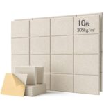 ChicCarryの吸音パネルは、高密度205kg/m³で、30cm×40cmのサイズが10枚セット。施工面積1.2㎡をカバーし、自己粘着で簡単設置。軽量、湿気防止、防音効果もあり、楽器の使用に最適です。