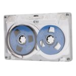 オープンリールブランクカセットテープ。金属メッキホイール、透明ボックス付き。55分の録音時間で音楽録音に最適。