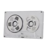 オープンリールの両面メタルカセットテープ、50分の録音時間を提供。音楽録音に最適で、透明ボックス付きで保管も便利。