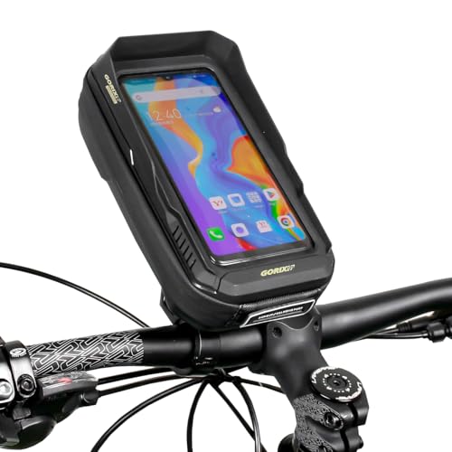 GORIXハンドルバッグは防水設計でスマホを安全に収納。クロスバイクやミニベロに最適で、タッチスクリーン対応。360度回転可能で、電動自転車にもおすすめのフロントバッグです。