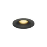コイズミのLEDダウンライトは高気密SB設計で防雨防湿仕様。100W相当の明るさを持ち、調光機能付き。埋込穴φ75mmで、マットブラックのデザインが特徴。電球色のAD1175B27。