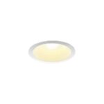 コイズミのLEDパネルダウンライトは、高気密SBで60W相当の明るさを持ち、Fit調色機能を備え、3つの光色を切り替え可能。埋込穴はφ100で、ファインホワイトのデザインです。電球色と昼白色を選択できます。