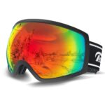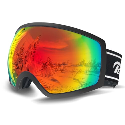 スキーゴーグルOTG対応。曇り止め、UV400保護、広視野のレンズ。軽量・耐衝撃、ベンチレーション付き。メンズ/レディース兼用、ヘルメット対応。晴れ/曇り/全天候対応。(ブラックフレーム/レッドレンズ)。