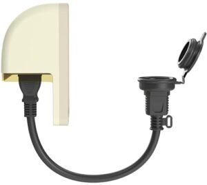 電源ケーブル 30cm 延長補助コードは屋外用で防雨型、PSE認定済み。柔軟性に優れたソフトタイプ、0.3mの延長コードは安全な電源増設に最適。防雨キャップ付きで安心して使用可能。