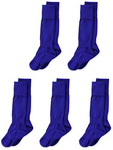 エー・ディー・ワンのサッカーソックス5足組。吸汗速乾、抗菌防臭機能を備え、22-24cm対応のフリーサイズ。フットサルやスポーツに最適なブルーのストッキングです。