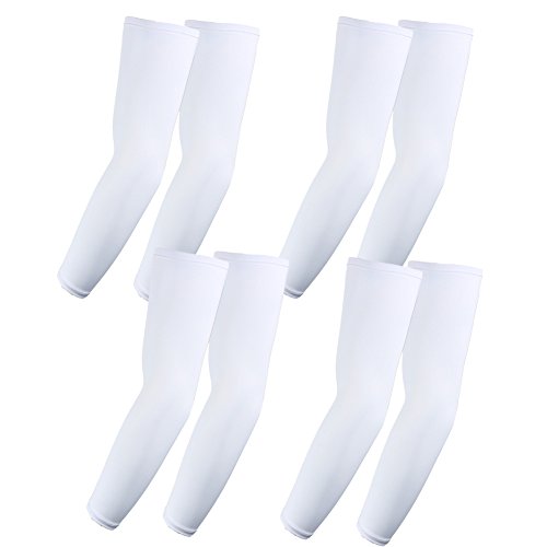 Elixir Golfの4ペアUV保護圧縮アームスリーブは、バイクやゴルフ、ハイキング、サイクリングなどのアウトドア活動に最適です。白色でスタイリッシュなデザイン。