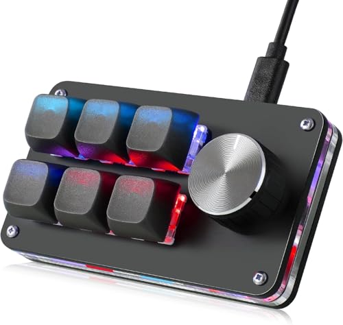 Koolertronのプログラム可能な片手キーパッド。6キーと1ノブ付き、RGBバックライト、青軸採用。Windows/Mac対応、マクロ機能で作業効率向上。オフィスやゲームに最適。