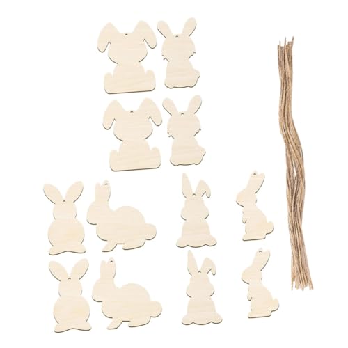 VILLFULの12個ウッドスライスは、うさぎ型の未完成イースター装飾品で、手芸や画材に最適です。おしゃれで実用的なハンギングデコレーションが楽しめます。