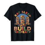 ビルディングブロックをテーマにした子供用レンガビルダーTシャツ。カラフルでデザイン性が高く、遊び心満載のアイテム。丈夫な素材で、快適な着心地を提供します。