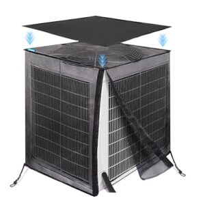 エアコン室外機カバー 防塵カバー 取り外し可能な防水トップ付き エアコンカバー 通気メッシュ 室外機用保護かばー オックスフォード布 アウトドア コットンウッド 葉 ゴミ ホコリよけ Outside Air Conditioner Cover (ブラック, 71*71*81cm)