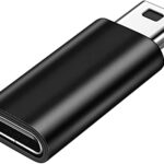オーディオファンのUSB変換アダプタは、miniUSB (オス)からUSB-C (メス)に変換。USB2.0対応、充電とデータ転送が可能。シンプルなブラックデザイン。
